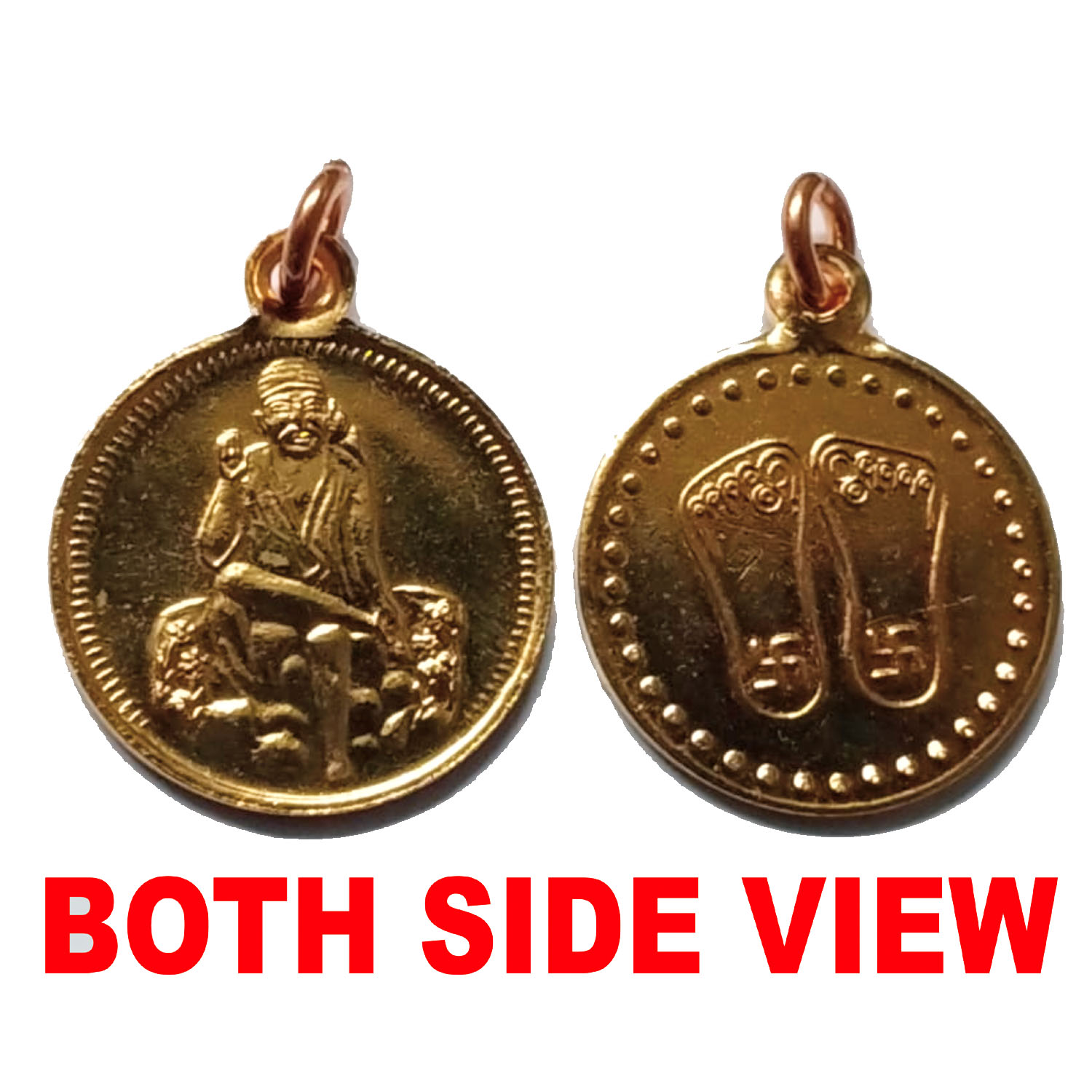 Aadhyathmik Sai Divya Pavithra Padukas on one side and Consecrated Shirdi Sai Roopu Kavach on other side Copper Pendant Ragi Rupu Seppu Chembu Locket Taamra Taamba Pendant For Fulfilling Wishes 1inch 5grams – S9058-141